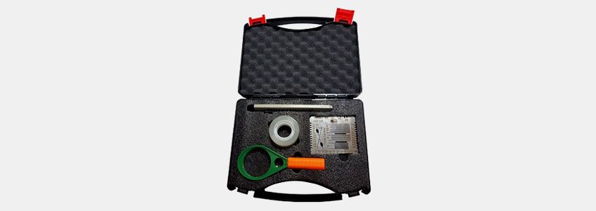- Multi-purpose surface testing equipment: Cross-cut tester for the adhesion assessment of thin and thick single or multi coat systems in line with Test Method A and Test Method B. Applicator for the preparation of wedge-shaped layers of coating materials, sagging applicator for determining the sagging properties and wet-film thickness gauge for testing the film thickness.