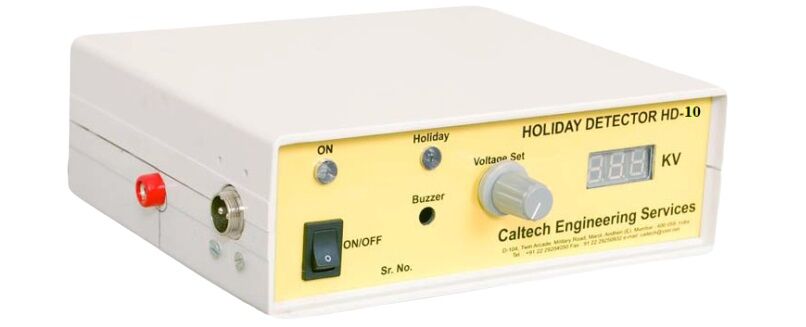 Caltech India offers Holiday Detector HD-10. Holiday test machine model HD 10 DC holiday detector has range of 0-10KV DC. Holiday Detector is portable fully digital holiday detector is used for quality control inspection instrument. It is used to electrically locate and fault find in defects of protective coatings. Audible and visual alarms are activated when a flaw is detected using holiday detector rubber brush and electrodes. This makes holiday detection procedure very easy and operator friendly.